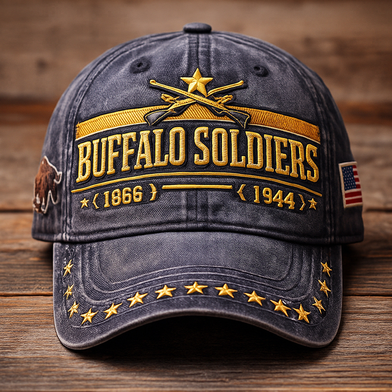• Mens Black African American Historical Buffalo Soldier Print Hat