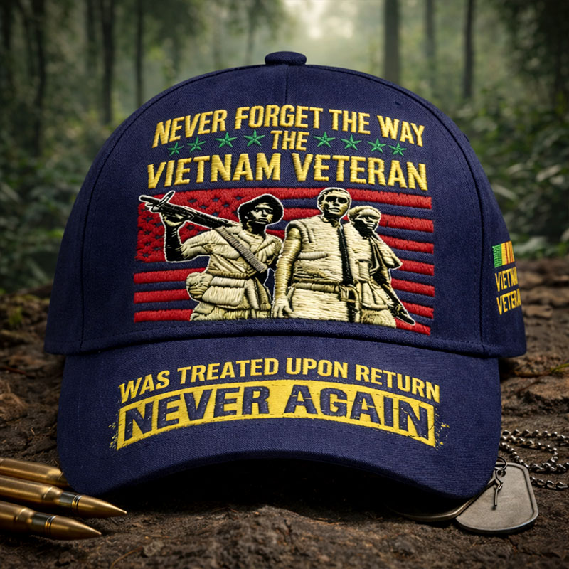 • "NEVER FORGET THE WAY THE VIETNAM VETERAN WAS TREATED UPON RETURN NEVER AGAIN" Commemorative Vietnam Veteran Baseball Cap