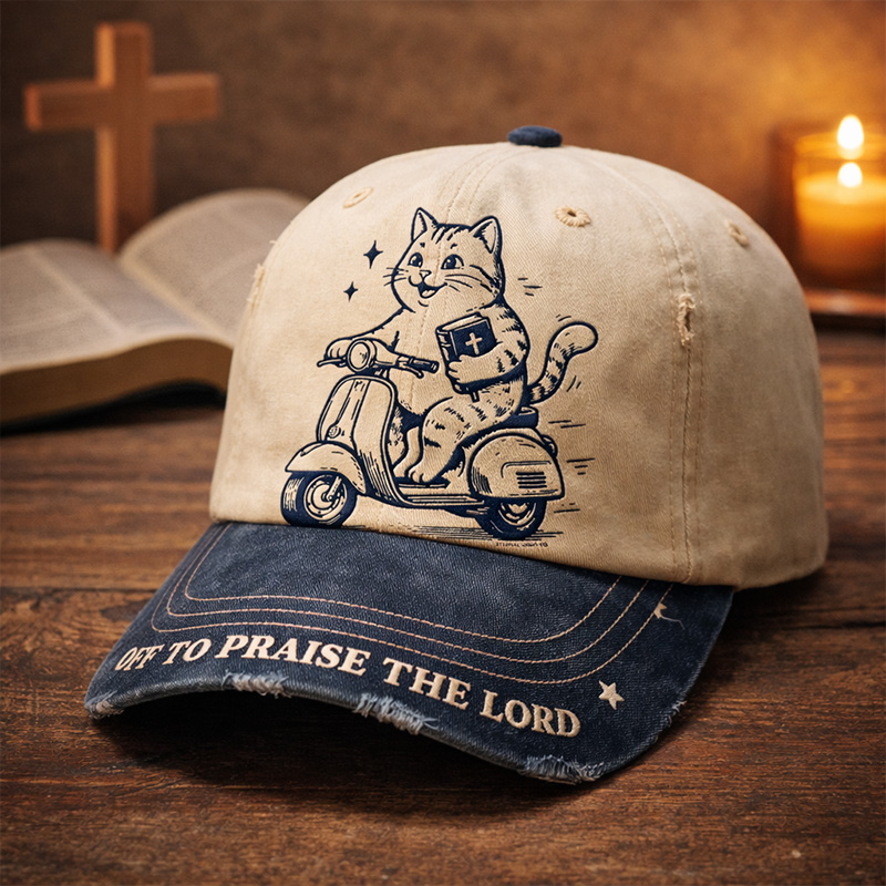 • Vintage Cat Faith “Off to Praise the Lord” Baseball Cap
