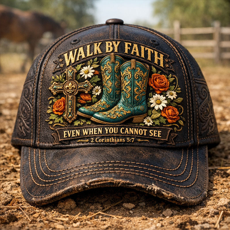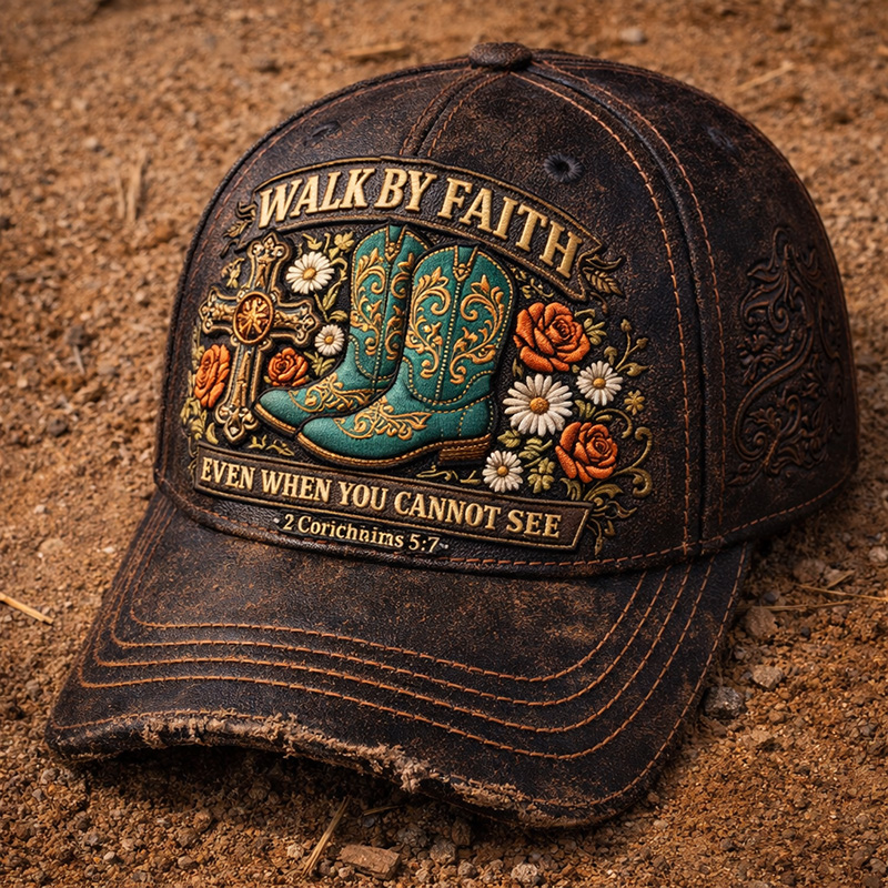 • Faith Vintage Distressed Cowboy Boots Print Casual Hat