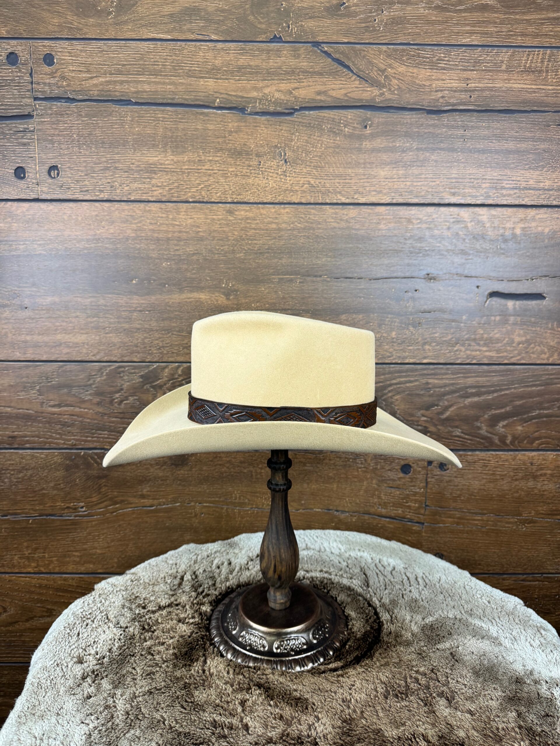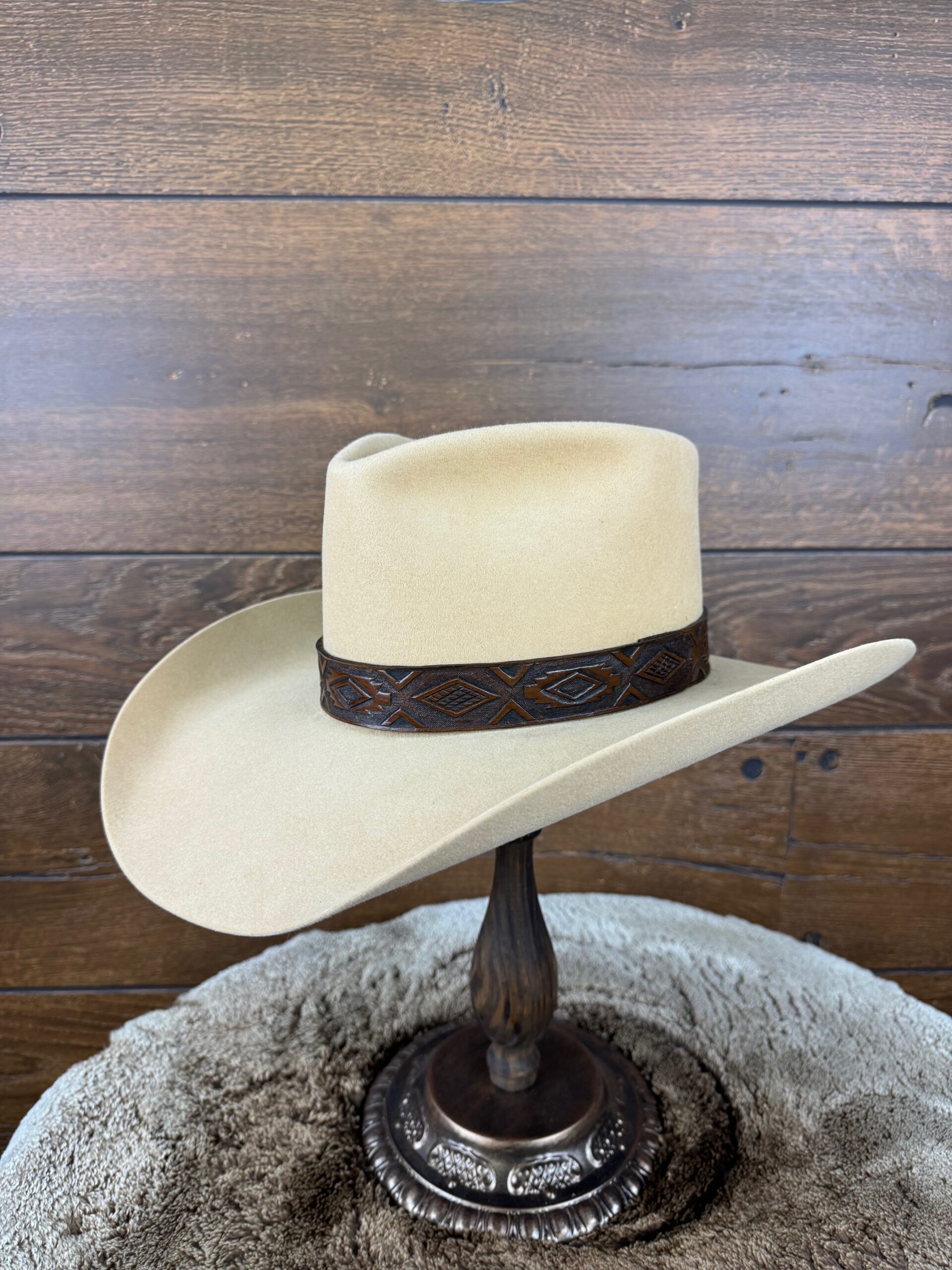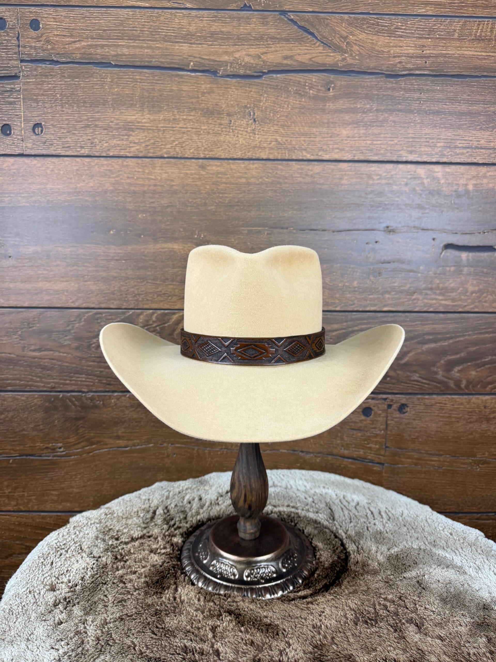 Hatband is LL Dark Brown Tooled Aztec pattern
