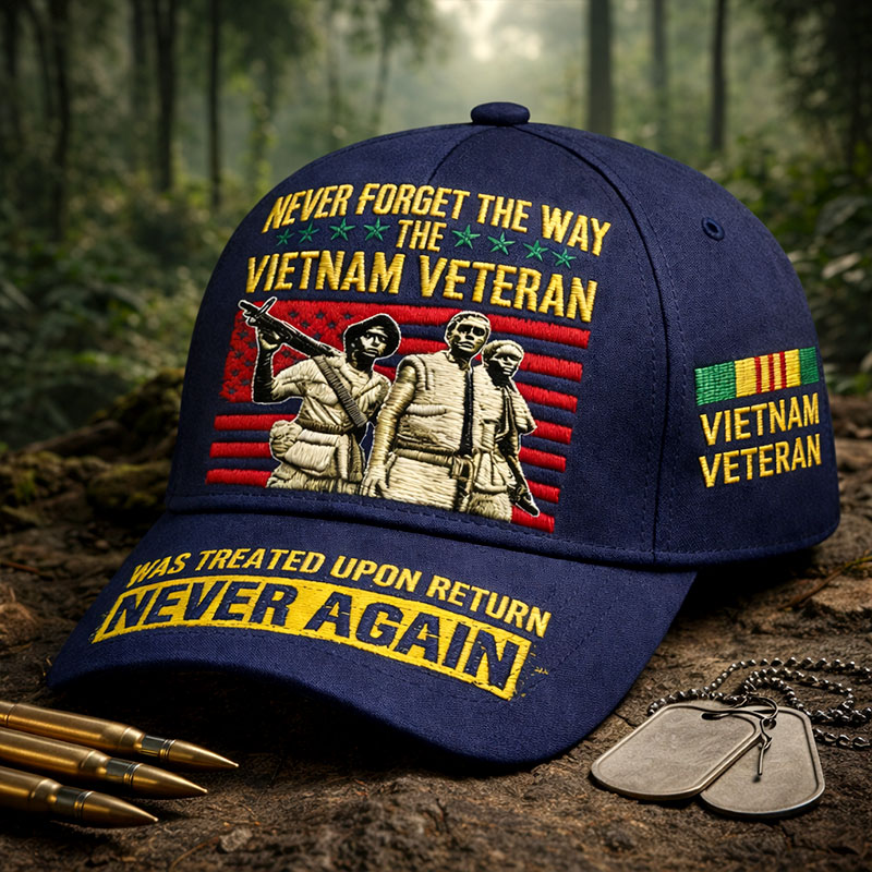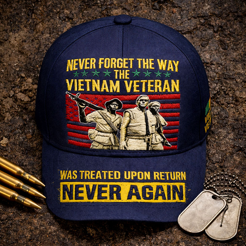 "NEVER FORGET THE WAY THE VIETNAM VETERAN WAS TREATED UPON RETURN NEVER AGAIN" Commemorative Vietnam Veteran Baseball Cap