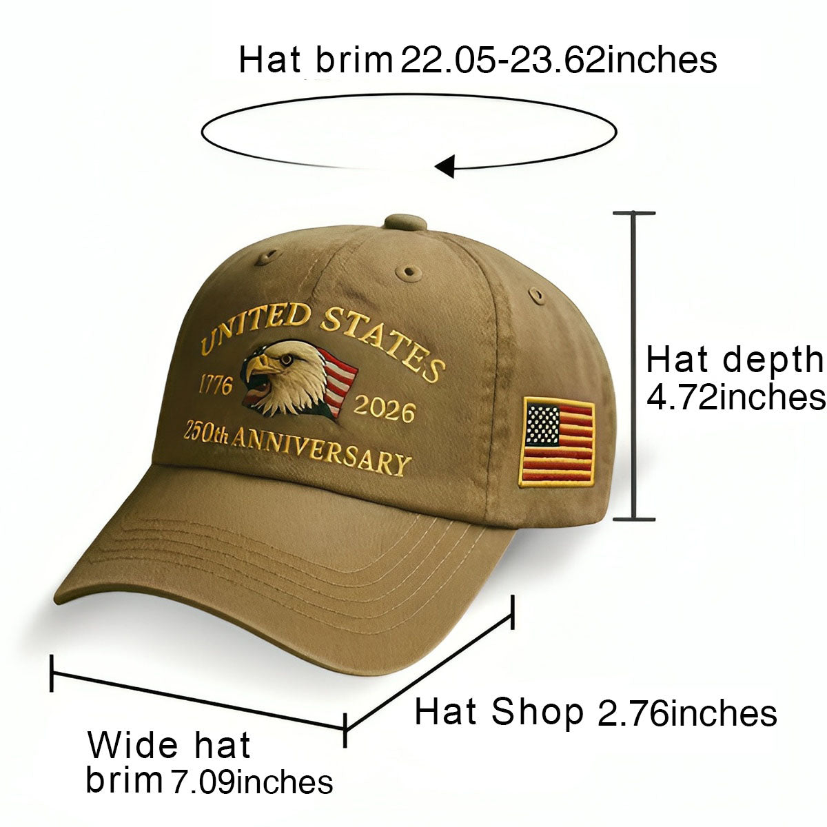 • Commemorative Design: Joining in the celebration of the U.S. 250th anniversary with this 250th anniversary hat. A stylish addition to any wardrobe, the hat allows you to express your patriotism while paying homage to 250 years of American freedom and history