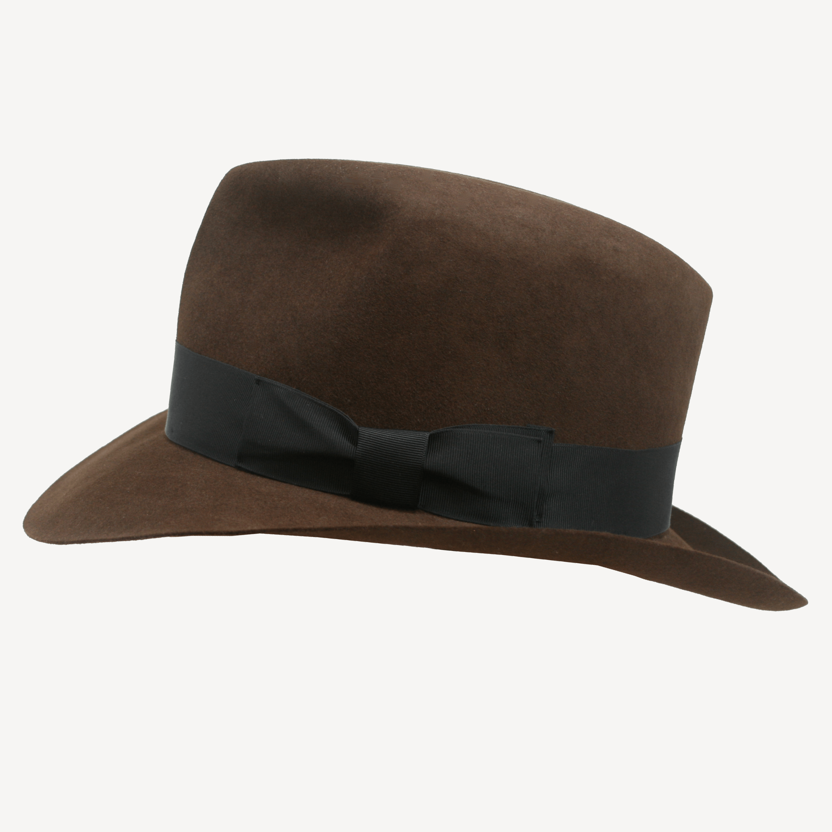 The original Herbert Johnson Indiana Jones Poet hat made famous by Harrison Ford in Spielberg's iconic 'Raiders of the Lost Ark' film. Still made by Herbert Johnson today.