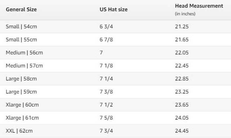Use a tape measure (or a length of string that you will have to hold up to a tape measure) to determine the length. Place the string or tape around your head about 1/8″ above your ear, across the mid-forehead, completely circling your head. Hold the tape firmly, but not too tightly. Basically you need to measure your head exactly where the hat will sit. If your measurement falls between sizes, choose the next largest size.
