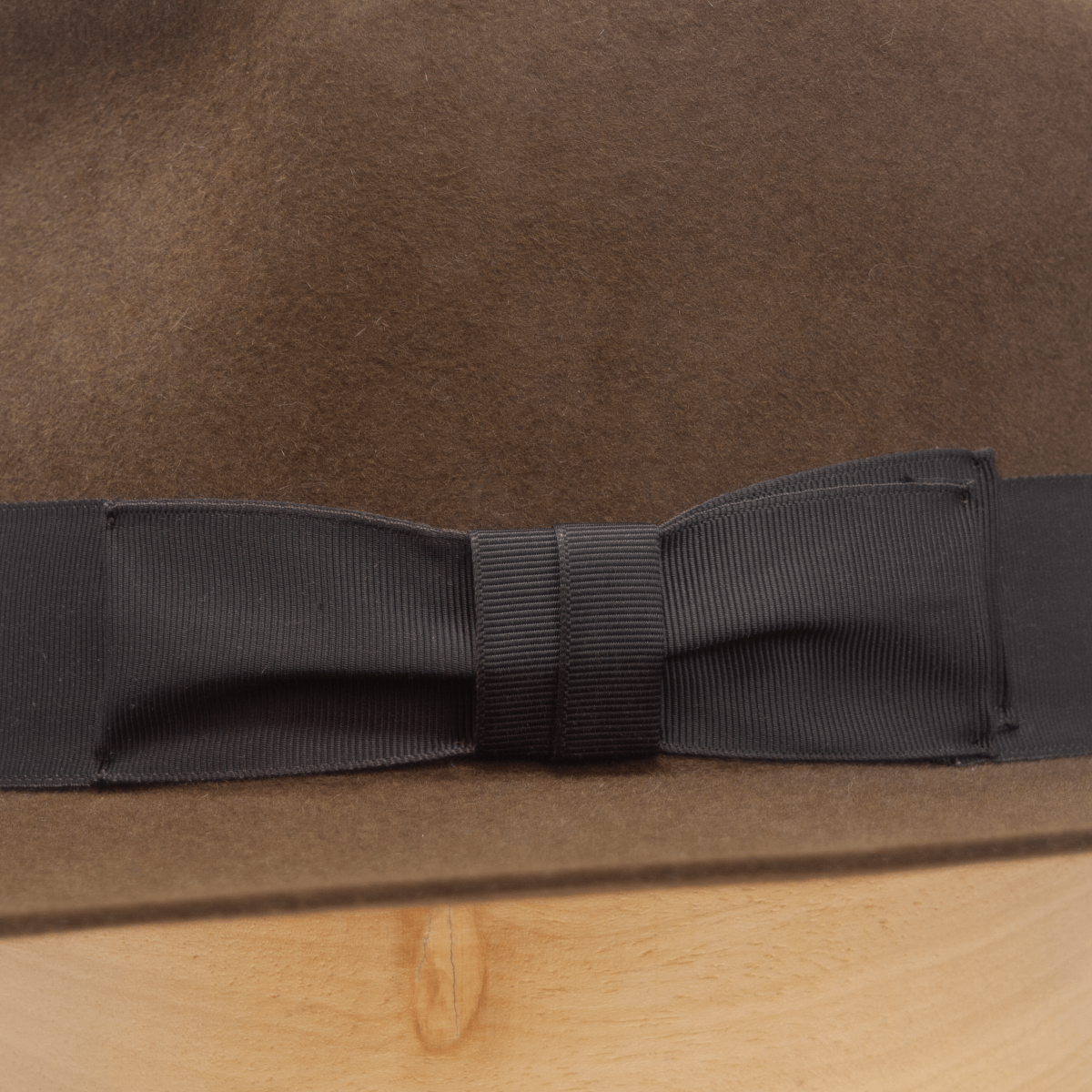 • Ribbon: 38mm dark brown screen accurate vintage galloon ribbon-band. Exterior bow knot fold.