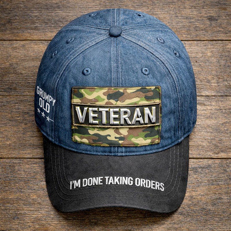 Vintage Camo Patch “Veteran” Humor Baseball Cap