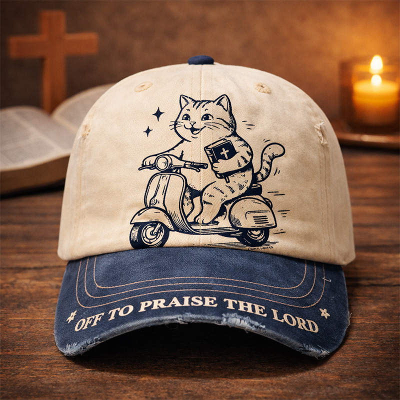 Vintage Cat Faith “Off to Praise the Lord” Baseball Cap